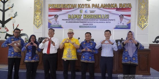 PALANGKA RAYA – layarkalteng.co.id, Dalam upaya mewujudkan tata kelola pemerintahan yang akuntabel dan modern, Pemerintah Kota Palangka Raya terus berbenah dalam penguatan sistem kearsipan. Salah satu langkah nyatanya diwujudkan melalui pelaksanaan Rapat Koordinasi Program Kerja Pengawasan Kearsipan Tahunan (PKPKT) yang digelar oleh Dinas Perpustakaan dan Kearsipan (Dispursip) Kota Palangka Raya, Jumat (25/4/2025), di Aula Peteng Karuhei II Kantor Wali Kota Palangka Raya.