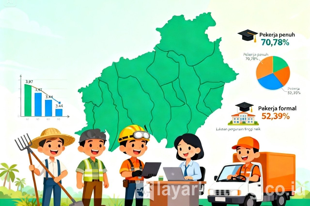 Ekonomi Daerah | LayarKalteng.co.id – Badan Pusat Statistik (BPS) Provinsi Kalimantan Tengah mencatat Tingkat Pengangguran Terbuka (TPT) pada November 2025 sebesar 3,44 persen. Angka ini turun 0,53 persen poin dibandingkan Agustus 2025, atau setara dengan berkurangnya 7,53 ribu orang penganggur menjadi 51,09 ribu orang.