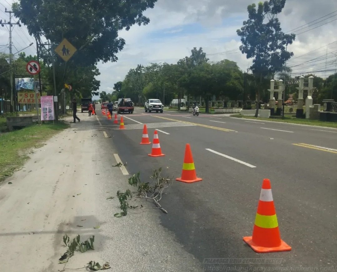 PALANGKA RAYA – layarkalteng.co.id, Tim Reaksi Cepat (TRC) BPBD Kota Palangka Raya bersama Tim Pemadam Kebakaran Dinas Kehutanan Provinsi Kalimantan Tengah melakukan penanganan darurat terhadap tumpahan oli yang membahayakan pengguna jalan di Jalan Tjilik Riwut Km.5, tepatnya di seberang kantor Pemko Palangka Raya, Kelurahan Bukit Tunggal, Kecamatan Jekan Raya.(10/4/2025)