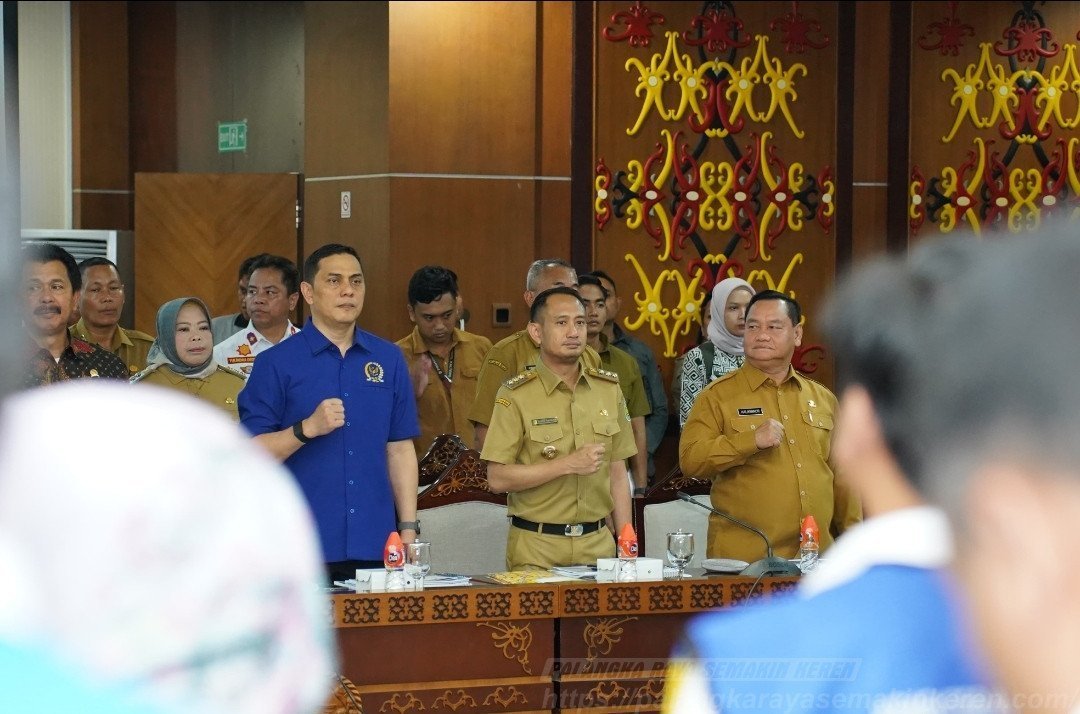 PALANGKA RAYA – layarkalteng.co.id, Wali Kota Palangka Raya, Fairid Naparin menghadiri rapat kerja bersama Komisi V DPR RI yang digelar oleh Pemerintah Provinsi Kalimantan Tengah di Aula Eka Hapakat, Kantor Gubernur Kalteng, Senin (14/04/2025). Kegiatan ini menjadi ajang penting dalam mendorong pembangunan infrastruktur yang berkelanjutan di wilayah Kalimantan Tengah.